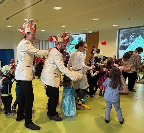Aufgeregt warteten wir im Turnraum auf den Elferrat. Aufegwärmt wurde mit dem ein oder anderen Faschingsschlager und dann war es endlich soweit – mit einer großen Poloniase begrüßten uns die Zeller Böck im Kindergarten und die Party ging direkt weiter!