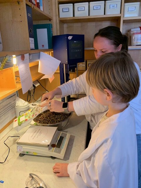 Es wurde gewogen und befüllt, jedes Kind konnte seinen eigenen Tee abfüllen. Auch das „richtige“ Händewaschen haben wir erfahren und konnten es direkt im Anschluss testen.